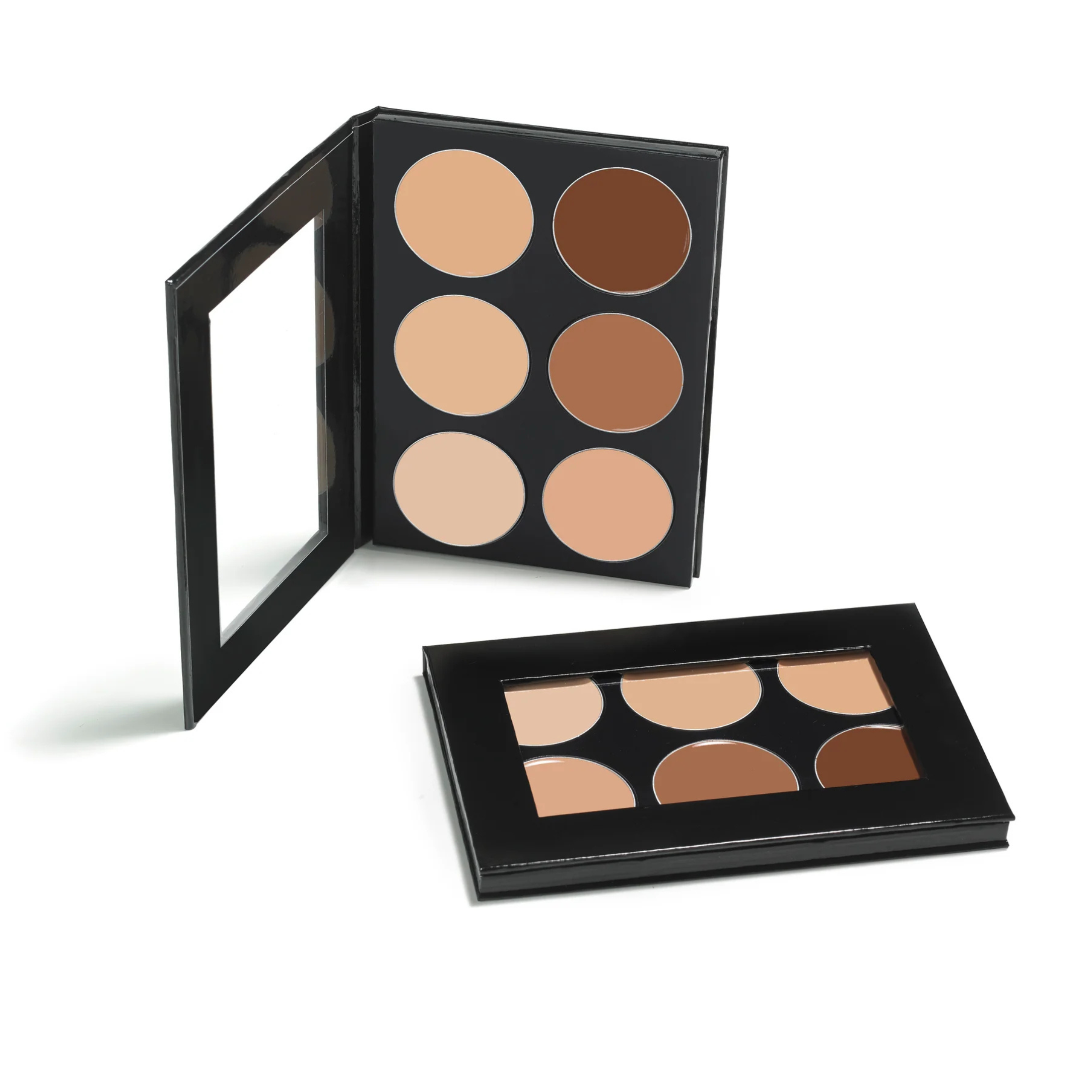 Con 6 bases, 2 rubores, 2 iluminadores y 2 botellas vacías para que mezcles y guardes tus propias combinaciones, este set es una joya para tu kit profesional o personal.