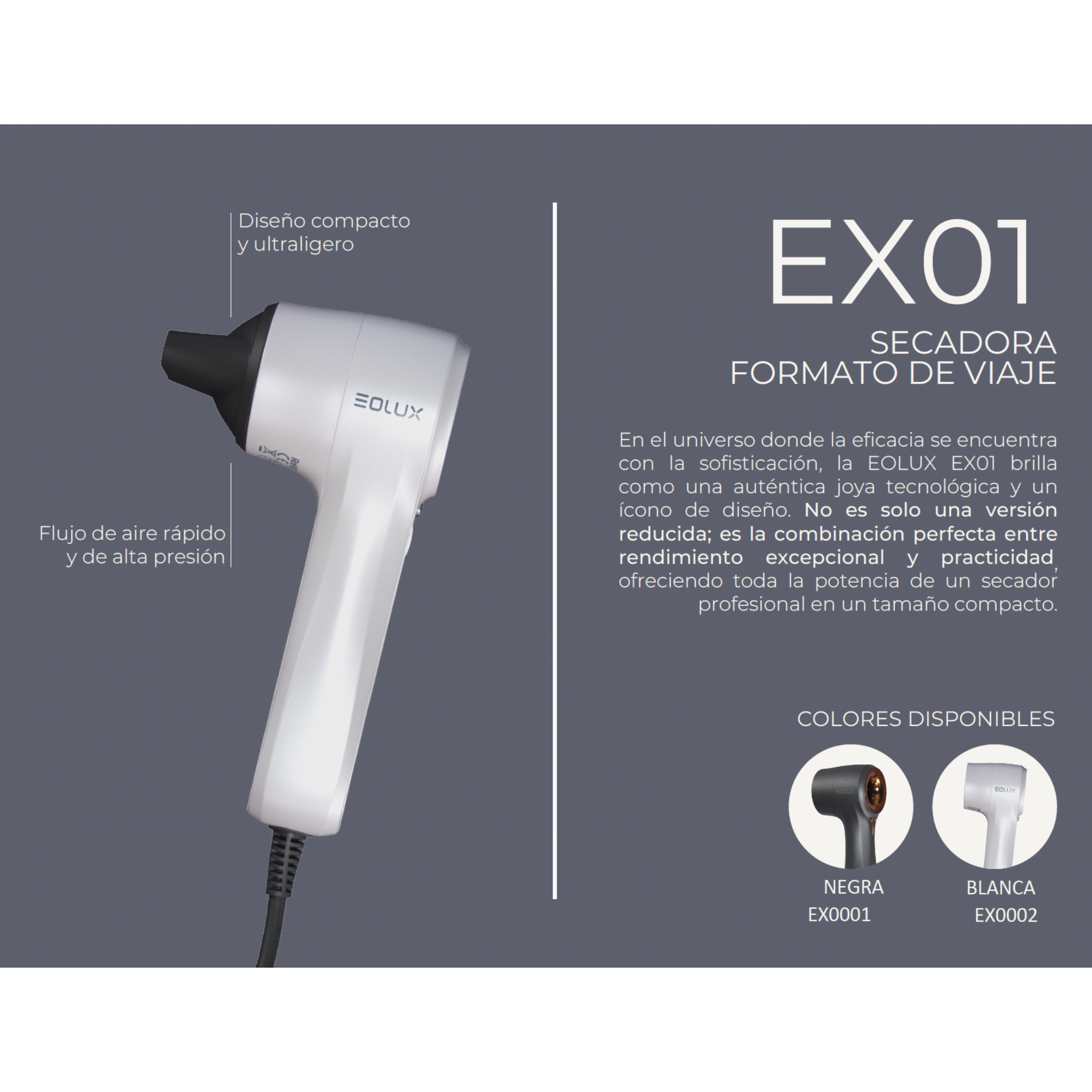 EOLUX Secador de pelo - Tamaño de viaje EX01