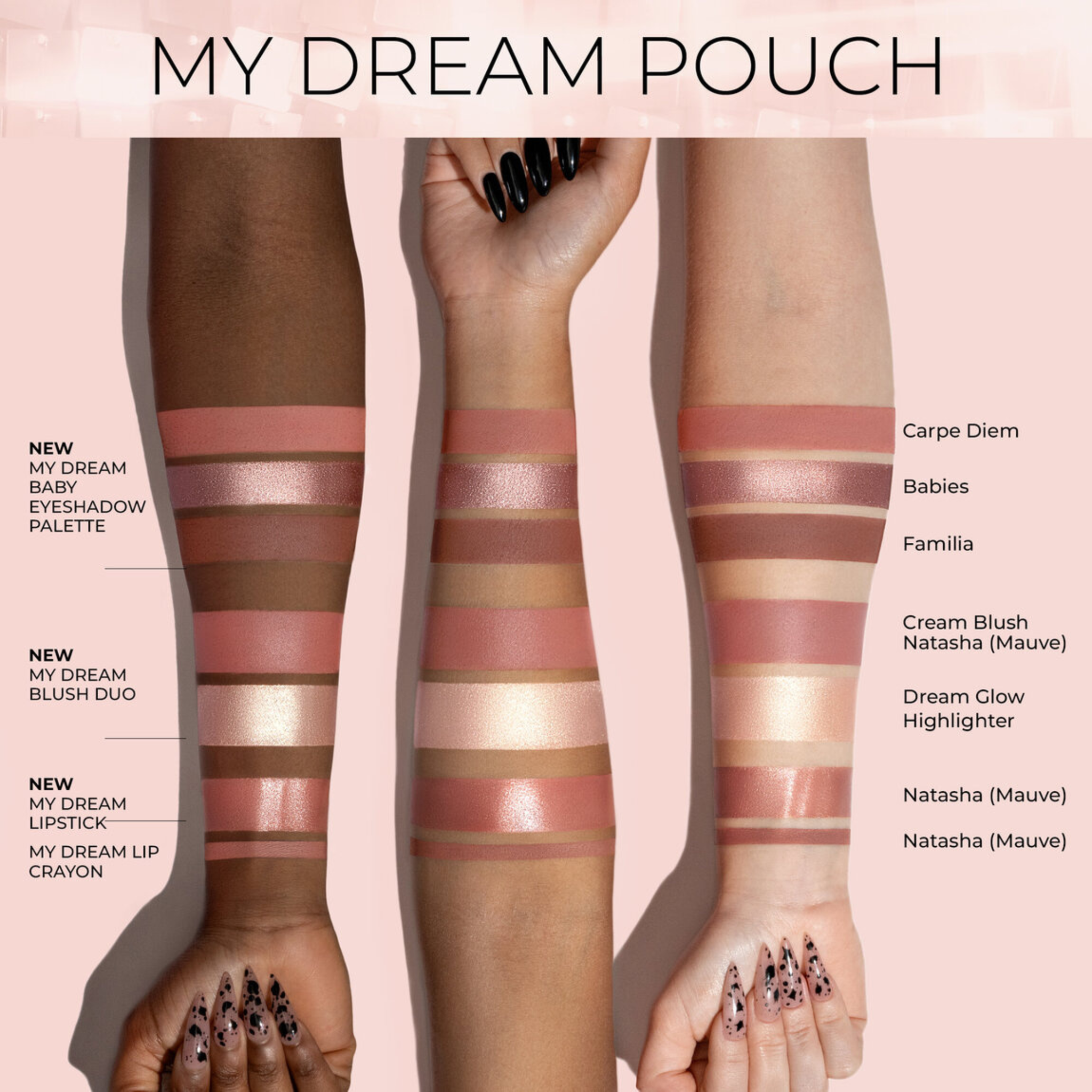 Celebra las fiestas con el neceser My Dream de Natasha Denona. El primer neceser navideño de Natasha viene repleto de productos en tamaño mini y normal de la icónica colección My Dream, inspirada en el icónico labial malva 'Natasha'. Incluye la nueva paleta de sombras My Dream Baby y el dúo de colorete My Mini Dream, junto con las ediciones limitadas de la barra de labios My Dream y el lápiz labial My Dream en el tono favorito de los fans, 'Natasha'. Este exclusivo set viene presentado en un brillante diseño de edición limitada y un neceser de maquillaje a juego de piel sintética metalizada. Consigue looks de ojos, mejillas y labios sin esfuerzo; es el regalo perfecto para estas fiestas, ya sea para ti o para alguien especial.